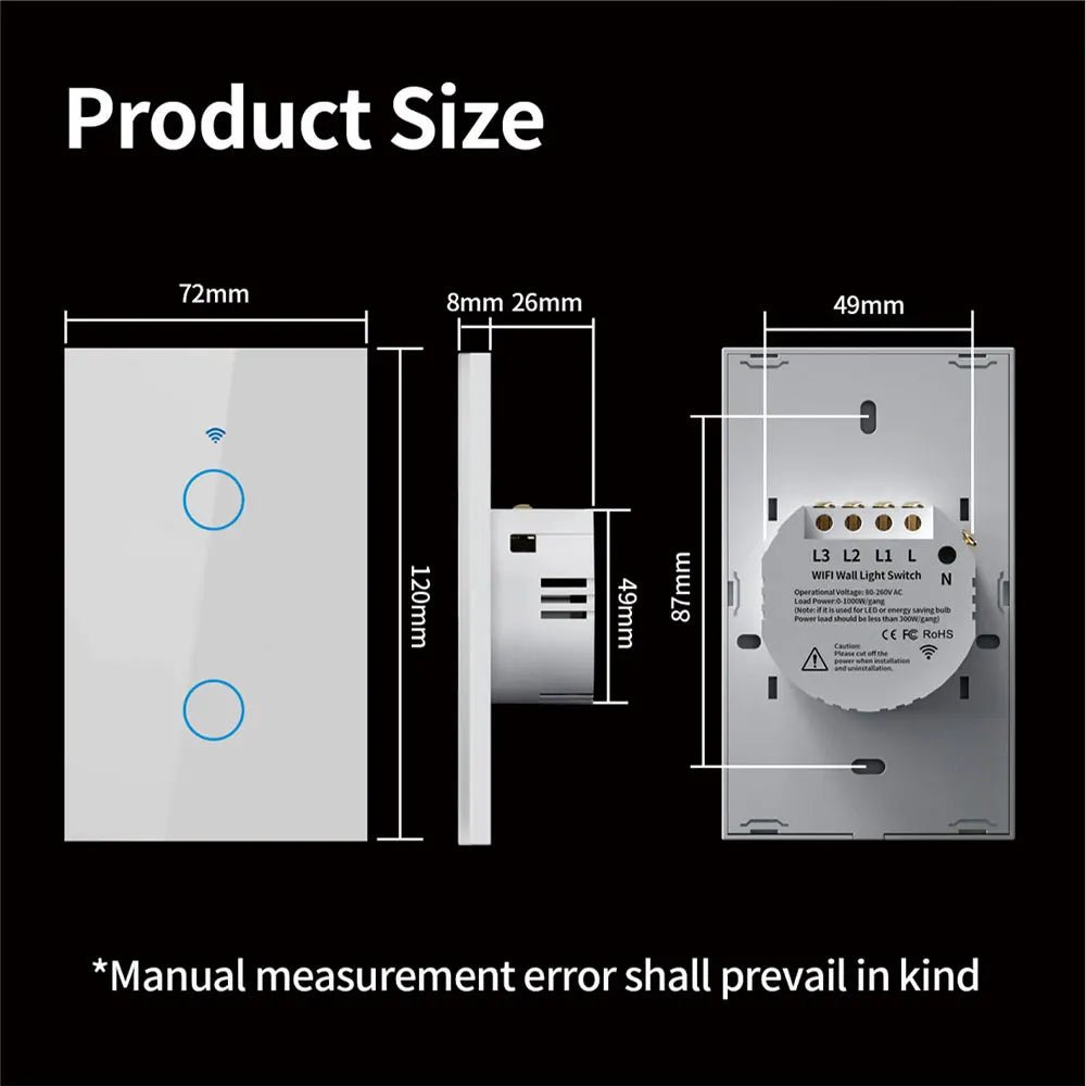 SmartWave™ RF433 – WiFi Touch Light Switch with No Neutral for Alexa & Google